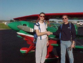 Steve after his first flight in a Pitts S-2B (With his patient and talented instructor, Rich Perkins)