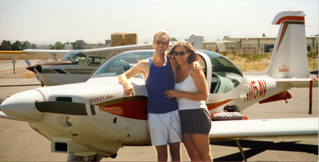 Christine and Steve in front of a Grob 115 C acro
